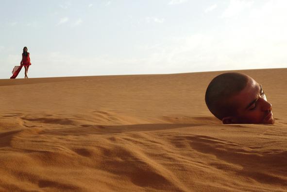 Dans l’immensité brûlante du désert, un homme est enterré dans le sable jusqu’au cou. Une femme, vêtue de voilages rouges, se dirige vers l’horizon sans faire attention à lui. Réveillé par l’ivresse des sens, il réussit au profit de multiples efforts à sortir de son berceau de sable. C’est là que commence sa quête. Celle du désir. |