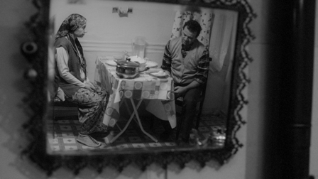 Une chambre sous un silence mortel. une femme prépare le dîner à son mari. L’écho de la télévision.